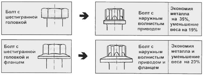 Работа с винтами, имеющими двенадцатигранное навершие, увеличивает эффективность передачи крутящего момента на 10 – 15%.