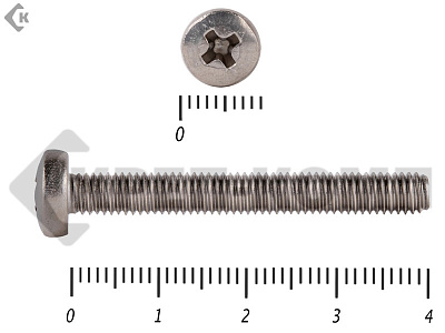 Винт с полукруглой головкой - это стальной стержень с полной метрической резьбой. Существует два варианта исполнения - с прямым шлицем и с крестообразным. Полукруглая головка обеспечивает лёгкий захват простой отверткой.