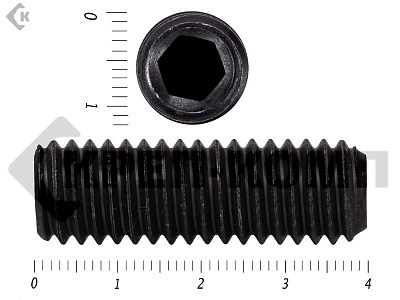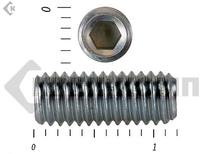 Винт DIN 913 установочный с внутренним шестигранником и плоским концом. Конец установочного винта имеет специальную форму, служащую для фиксации изделий относительно друг друга. Для передачи крутящего момента винт установочный din 913 имеет внутренний шестигранник. Этот вид ключа позволяет приложить большое усилие к винту, поэтому установка производится максимально прочно и надежно. Винт имеет полную метрическую резьбу и по своим характеристикам является аналогом стандартов ISO 4026 и ГОСТ 11074.