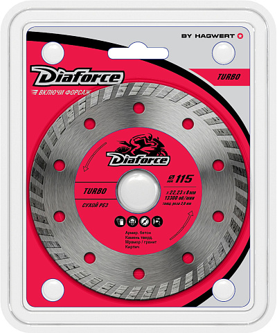 Алмазные диски предназначены для сухой и мокрой обработки прочных строительных и отделочных материалов: бетона, камня, кирпича, мрамора, гранита, черепицы, гипсовых плит, асбеста, шифера, керамики. Диски с алмазным напылением эффективнее абразивного инструмента за счет постоянного диаметра, обеспечивающего стабильную глубину резания, и особой конструкции, позволяющей выполнять работу быстрее и эффективнее. Утолщенная ступица и усиленная основа предотвращают изгибание и деформирование инструмента во время обработки твердых материалов. Промежутки между сегментами и перфорация обеспечивают удаление пыли и шлама из зоны резания.
